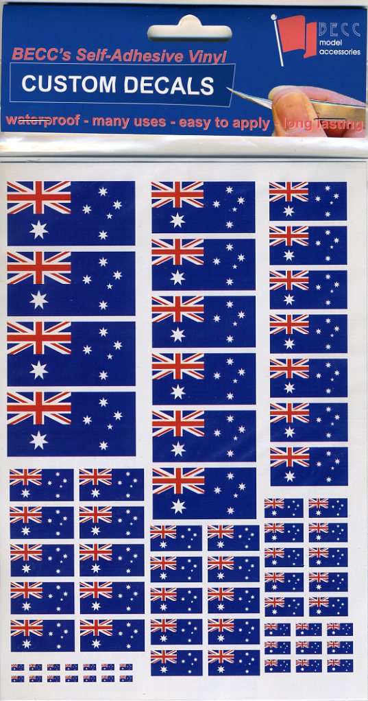 Becc Australia National Flag - Decal Multipack VAUS01Available in a multi sized sheet with sizes 5mm, 10mm, 15mm, 20mm, 25mm, 30mm, 40mm & 50mm in various quantities