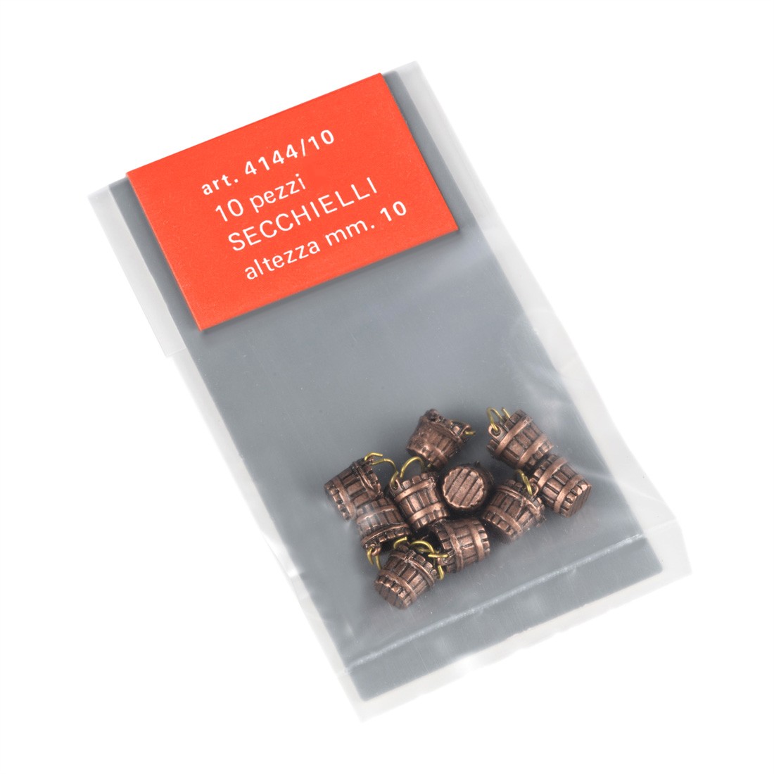 Cannon bucket, Cast metal. Height 7mm, diameter 6mmAmati describe these as 10mm, which must be overall height with handle in upright position.