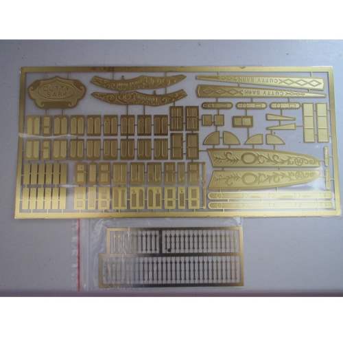 Set of Brass Photo-etched sheets containingdecorations for the Cutty Sark 1:78, Kit 789Sheet dimensions 155x300mm & 50x125mm
