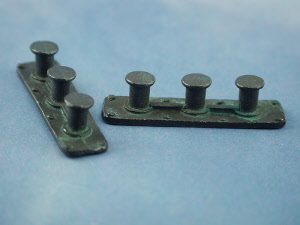 Aeronaut Model Boat Fittings 5449/03 Bollard - Triple on base - Cast metal - L 34mm, W 9mm, H 8mmSold Individually
