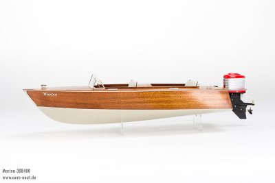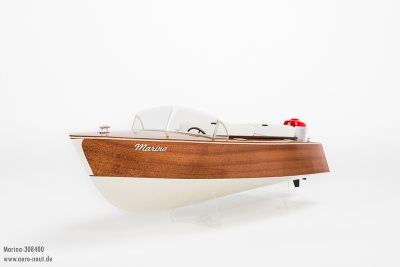 Outboard motors like our Aqua-Race 50 or Aqua-Race 60 with an output of ca. 300 W provide the model with ample power not only for a comfortable cruising speed but for an exciting perfomance. Equipped with a 2-3s LiPo the Marina will give you all the fun you are looking for.