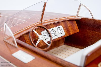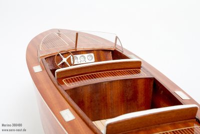 The model is constructed in the same manner as most aero-naut boats, using a special technique to build a straight and true hull. All parts are laser cut and just need to be placed on the included aero-naut jig to be glued together. Hull and deck are beautiful mahogani veneer, which is brought to life by the application of several coats of clear varnish.
