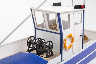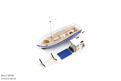 The Mowe is based on a typical North Sea cutter, and is an ideal all-wood model for the beginner to the hobby. It is also suitable for group work, e.g. as a school technology project. All parts are supplied die-cut or sawn to shape and virtually ready to fit; assembly is absolutely straightforward and can be completed in a very short time using only simple tools (scissors, drill, clothes pegs, screwdriver, pins and adhesive tape). The deck serves as a building jig: the bulkheads are erected on it and glued to the thin plywood hull sides