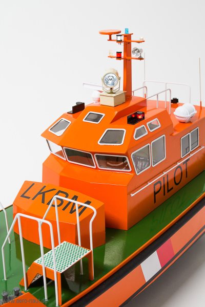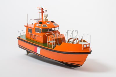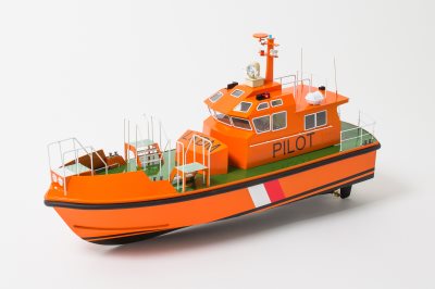 Boats of this general type are widely encountered along the Baltic and North Sea coasts. These vessels are very agile and fast, typically capable of 25 - 30 kn. Their task is to provide reliable, all-weather transport for pilots to the large ocean-going ships. The space aft of the command stand can accommodate several pilots, so that a single excursion can take all of them out to their workplaces. Our model very effectively incorporates the typical characteristics and handling of these boats.