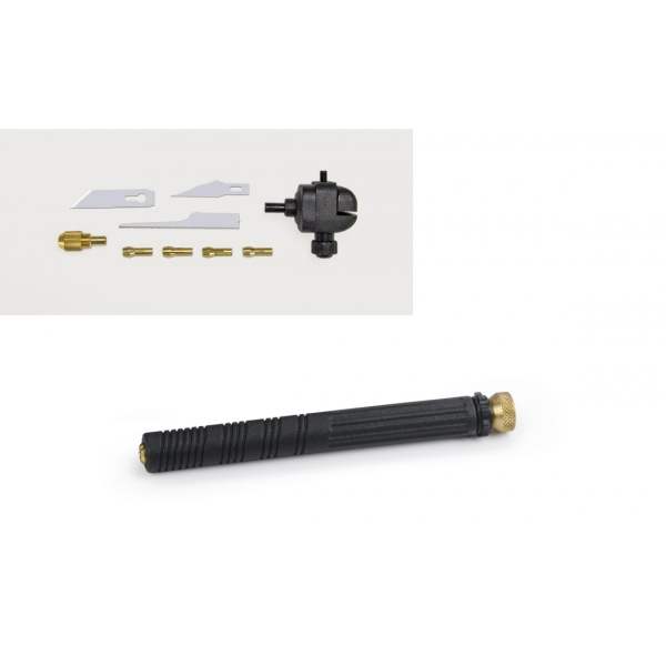 Amati Action Set. Designed for delicate hand work, the Action cutter, made in unbreakable nylon, works as a hobby knife, hand drill, miniature pin vice and saw.