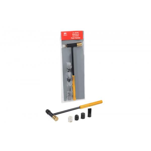 Amati Modellers Hammer Set.This hammer has been designed and developed to fix small nails easily, perfect for planking. This set comes complete with six interchangeable heads. The hammer has a metal handle.