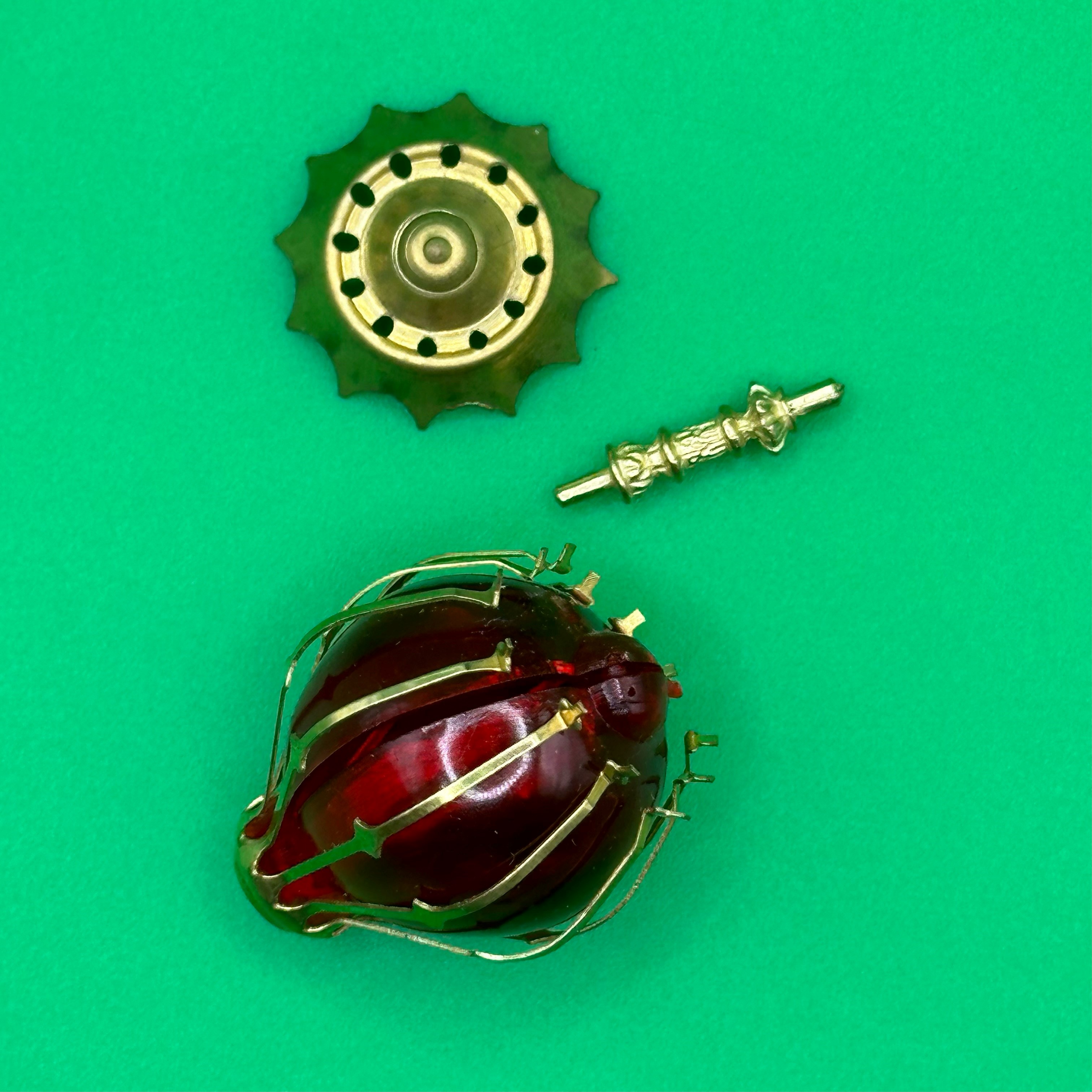 Period Lantern - Cast Brass, with red glass effect. Height 35mm.