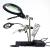 Our third hand includes a flexible shaft with 5 bright LED lights, a large magnifier (90 mm/3,54'' diameter; 2,5x magnification), two interchangeable smaller magnifiers (34mm/1,33¨diameter; 7,5x and 10x magnification); a solid and stable base, solder holder and two sturdy metal clamps.
