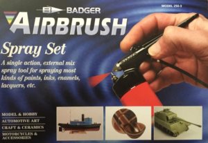 Badgers 250® basic spray tool features simple air and paint controls which allow the spray pattern to be varied. Enamels, artists colours, lacquers and any liquid that can be thinned down to the consistency of milk can be sprayed through the Badger 250. The 250 is basic enough for children, (ages 8 and up) to use with minimal supervision, yet efficient enough for adult use. Hands-on inspection and testing insure Badgers high quality standards.