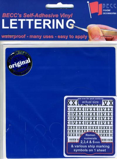 2mm, 3mm, 4mm & 6mm Roman text (I, V & X) and hull marking symbols cut from matt blue self-adhesive vinyl.