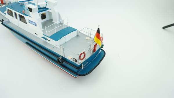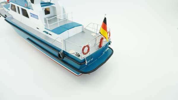 This ship, with a 15m length and a 3.9m beam, was built at the Bodan Shipyard in Kressborn, Germany, and delivered on 30th June 1989 to the Harbour Police in Bayern. The ship is stationed at Passau on the Danube. Of the regional boat type, the WSP 10 has 300 HP MAN diesel engines, which give an spproximate speed of 40 kph. When on normal duty, the boat has a crew of two and various equipment, including radar, echo sounder, automatic pilot, 4 radios and an explosion safeguard. The boat and its crew have a wide variety of tasks, such as surveillance, especially in connection with dangerous cargoes, and normal police duties. Another important task is environmental surveillance.