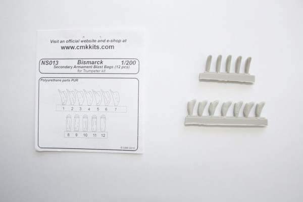 Bismark/Bismarck German Battleship 1941 Secondary Armament Blast Bags (12 pcs) Highly detailed resin cast blast bags (12 pcs) for secondary 150 mm guns. (designed to be used with Trumpeter kits)
