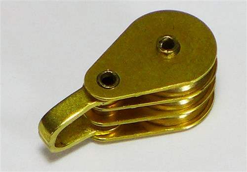 Home Model Boat Fittings Model Yacht Fittings Rigging Blocks 10mm Rigging Blocks Brass 10mm Rigging Block Series Brass Shackle Triple Block 10mm