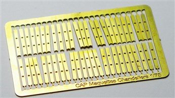 Cap Maquettes Rail StanchionsBrass Etch sheet containg 50 x rail stanchionsHeight 13mm Width 1.5mmFor Brass Rod 1.2mm top rail, 0.5 mm inner x 2