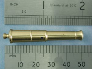 Sold in packs of 2, these turned brass carriage gun barrels are faithful to the originals of Circa 1790, even including an authentic trunnion hole drilled off centre. Gun length: 55mm.