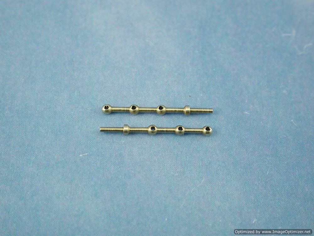 Caldercraft Model Boat Fittings 66315 15mm 3 Ball Stanchion: Height (excluding fixing pin) 15mm, Fixing pin length 4mm, Stanchion bar Ø0.85mm, Ball Ø1.8mm, Hole Ø0.75mm. Pack of 10.