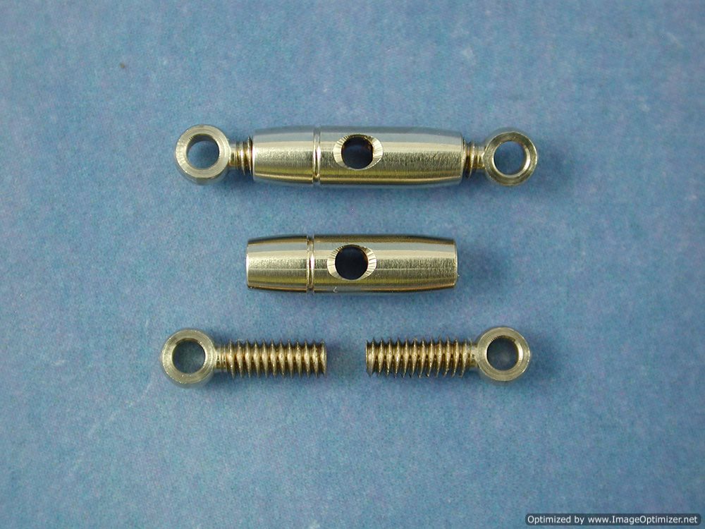 Caldercraft Model Boat Fittings 645310 M2 Turnbuckle 3x10: Working turned brass eye/eye turnbuckle - Body Ø3mm, Body Length 10mm, M2 left/right hand threaded ends, Eye Ø3mm, Hole Ø1.6mm, Operating range 17-24mm. Pack of 2.