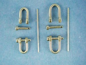 Caldercraft Model Boat Fittings 62212 Shackle 5x8mm, 1mm Split Pin: Working Shackle, Width: 5mm, Length: 8mm, Eye Ø: 2.5mm, Hole Ø: 1.05mm, Split Pin Ø: 0.55mm. Pack of 2.