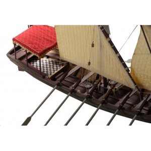 A felucca belonging to the 112-gun three decker ship of the line Salvador del Mundo. This felucca is rigged with lateen and spritsail, with awning in the stern to embark high ranking Spanish Navy officers. Only ships with three or more bridges had this type of boat.