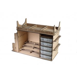 Ref. 44014Measures:Length: 630 mmWidth: 250 mmHeight: 430mmWooden kit, all the pieces fit perfectly; pvc trays are included; tools and paints are not included..