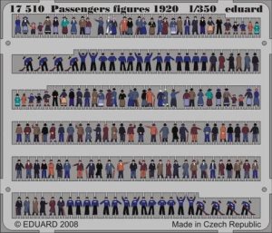 Eduard Photo-Etch Passenger Liner Figures.Pre-painted in colour 1:350 ScalePassengers Figures 1920 (Titanic, Lusitania etc) (designed to be used with Academy, Entex and Minicraft R.M.S Titanic and Entex, Gunze Sanyo and Revell kits)