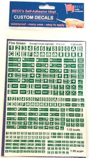 Green & White escape route signage - pre cut self-adhesive Includes Scales 1:24, 1:32 and 1:48