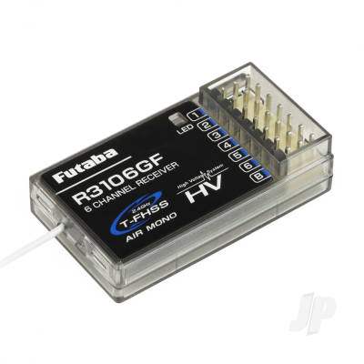 Futaba R3106GF 6-Channel (PWM) Air Receiver T-FHSS6-channel PWM, T-FHSS air mono receiver, up to 8.4V.