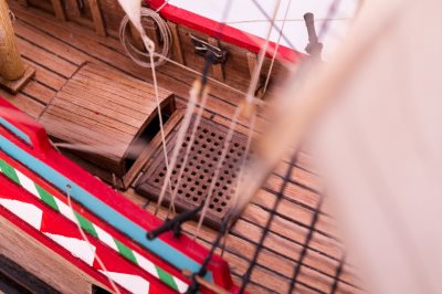 The kit contains: all parts for buildings of one wooden model in two otions- sailning or motorized. Keel, frames, deck and planks are cut by laser. Dowels for making mast and yards. Block and other wooden accesories. Resin parts. Plans and instructions. Photoetched brass parts.