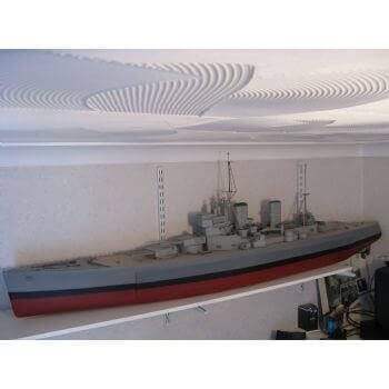 This 37in. model (1:240 scale) battleship makes an extremely interesting project for the slightly more advanced modeller. Powered by any medium sized electric motor. Suitable for R/C. Beam 5.25in.
