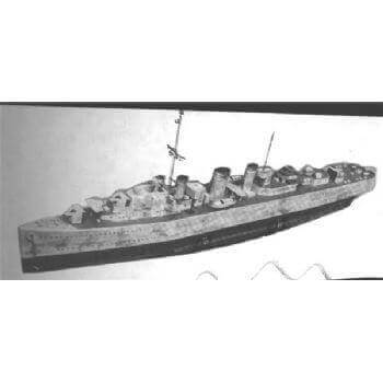 Another 1:144 stand-off scale warship design of simple balsa box hull construction, this fast minelayer is 35in long and 4in beam, takes two-function R/C.