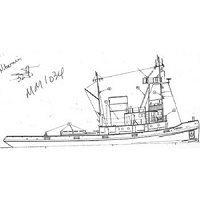 Hibernia Thames Tug. Modern tug sister to Avenger, drawn at 1:132 scale, length 11.5in Hull lines and sections no construction information but drawing well detailed.