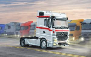 Actros is the commercial name for Mercedes-Benz heavy truck range. The Actros range has been introduced in 1995 and quickly achieved a significant commercial success as a suitable solution to perform longdistance haulage and heavy-duties haulage. The New Actros, introduced on the market in 2012, is the most update and innovative expression of the heavy truck Mercedes family. It is characterised by an advanced and modern design and the adoption of new Euro 5 and Euro 6 engines. The vehicle configuration has been designed and developed to guarantee the highest operational efficiency minimising the running costs. Among the several configurations available it is particularly interesting the long-haul high-roof cabin version, design to offer the highest standard of comfort on board for two drivers.