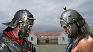 During the first Century B.C. a long period of internal civil wars declared the end of the Roman Republic and it laid the foundation for the birth of the Roman Empire. During the first Century exceptional political and military leaders, as Julius Caesar, wrote impressive historical pages thanks to military campaigns that expand the Roman border towards more and more distant frontiers. The most famous campaign, well described directly by Julius Cesar in his De Bello Gallico, was conducted against the Gauls led by Vercingetorix and ended with the Roman victory at Alesia in 52 BC. The effectiveness and organization of the roman legions triumphed over the courage of the Celtic warriors. The military campaigns had gradually expanded the Roman borders until arriving in Britain and on the "Limes" of the Rhine river. However the Romans brought in the conquered lands, a political, legislative and cultural model completely new and innovative who contributed, for several years, to achieve a stable and definitely evolved social system.