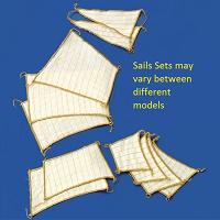 Blocks, rings and whip yarn for rigging the sails are neither included in the kit, nor in the sail set and must be purchased.