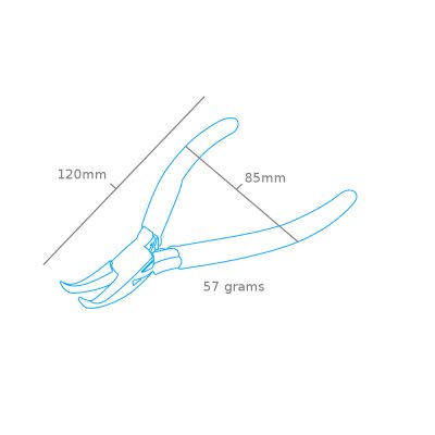 Professional quality pliers - bent smooth snipe nose jaws with spring. Length 115mm