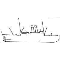 Knight Of St Patrick. Early twin-funnel ocean towing tug of 1886 drawn from a model in Liverpool Museum. Length 38in., beam 5.5in (1:48 scale), hull lines and superstructure details, no structural guidance.