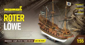 The galleon Roter Löwe was built in the Netherlands in the 1597 and was bought in 1601 by the Council of Königsberg on account of the Elector of Brandenburg. It was in service as a vedette-boat in Pillau from 1602 to 1605 under captain Peter Hintzes command. The actual dimensions of the Roter Löwe are unknown, however, using the tonnage of 240 tons with the construction methods at that time, it was possible to reconstruct a ship having a length of 28 metres from prow to stern and a width of about 8 metres.