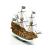 A Double planked hull construction using Lime and Walnut strips, pre cut frames and keel, deck planked in tanganyika, fittings made from brass, walnut, boxwood, and beech, wooden masts and spars, brass cannon barrels, rigging cord and silk flags. Full size plan sheets and a multi language instruction manual.