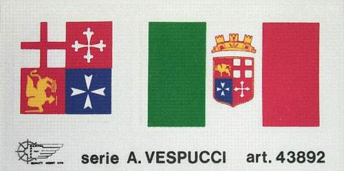 Flag set for the Amerigo Vespucci, kit no. 741Silk Printed Sheet Size 73x150mm