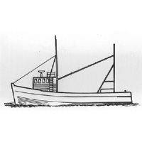 My Susanne: A modern transom sterned inshore fishing trawler with a planked hull. Length 22½in., beam 8in. Can be built throughout in balsa