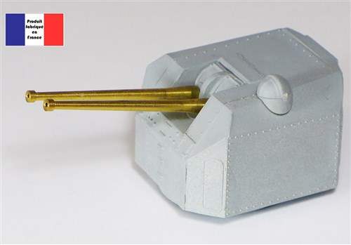 Gun turret - Twin 5" - Plastic & brass - Size 80 x 40 x 45mm