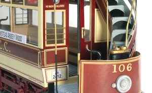 This tramcar was built in April 1903 by the company Electric Railway and Tramway Carriage Works. It was one of the hundred B Class vehicles ordered by the London County Council. With number 106 this car was used as a passenger transit vehicle up until 1925, when it was converted into a snowbroom and given the number 022. En 1983, 106 was taken to the Crich Village National Tramway Museum, in Derbyshire, where it remains to this day, having covered over 10,000 miles transporting passengers. It was originally powered by Dick Kerr motors, type DK25A, providing 25 hp, which were replaced in 1927 by Westinghouse motors, type 220, providing 42 hp. It was originally fitted with handbrakes on the wheels and rheostatic braking through the motors. In 1908 magnetic track brakes were fitted.