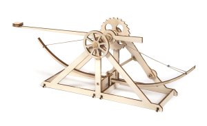 Set of 4 Leonardo Da Vinci machines. Bicycle, flying machine, excavator and catapult.