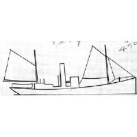 Ocean Reward: A steel drifter, built in 1914, very typical of the most common type of steam powered, steel-built craft. At 1:48 scale, length is 22¾in., beam 5ins., and displacement about 3 7lbs. Lines and visible details only.