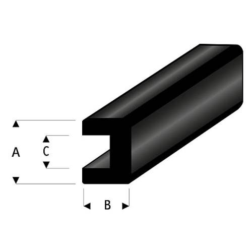 Raboesch Square Rubber U Profile. Height 6mm x Width 4mm x Length 2 Metres
