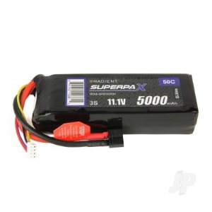 Cell count: 3SCapacity (mAh): 5000Rating: 50CLength (mm): 128Width (mm): 43Height (mm): 29Plug type: HCT