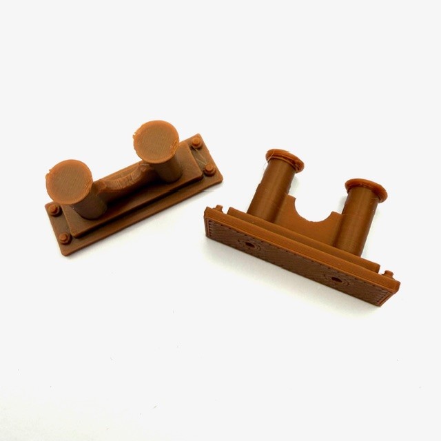 SJH Model Boat Fittings Clyde Puffer Stern Type Bollard Straight Webbed 22.5 x 12mmDouble Bollard (Straight Webbed) Length 22.5mm x 12mm High x 7.5mm WidePack Qty 2