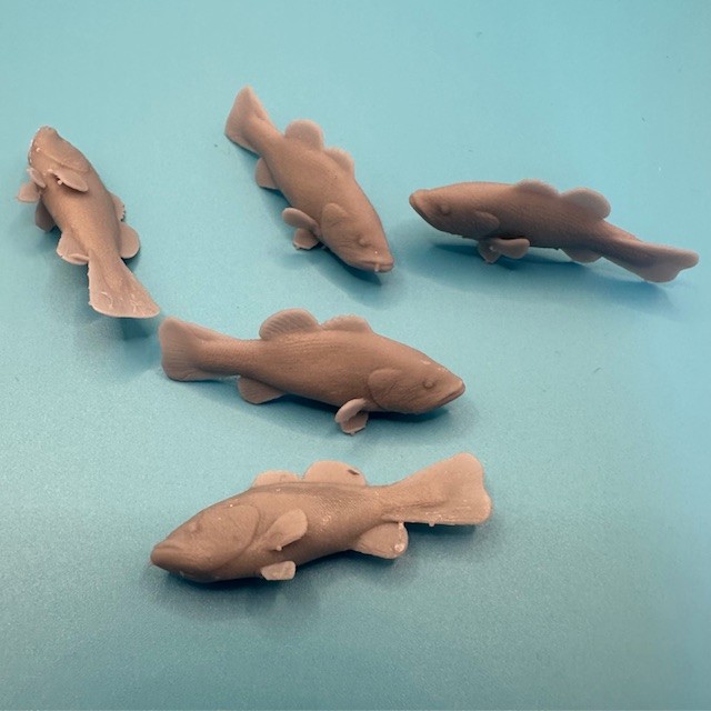 SJH Model Boat Fittings Sea Bass Fish 40mmPackaged still with the sprues on which need to be removed with cutters, for safe travellingQuantity 5Length 40mm