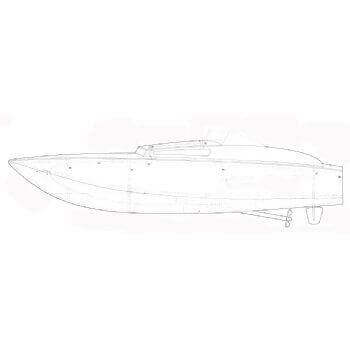 A semi-scale offshore power boat racer, which can be electrically powered or fitted with up to 0.20 motors. Has been run with 0.30 with success. Length 27in, beam 9in.