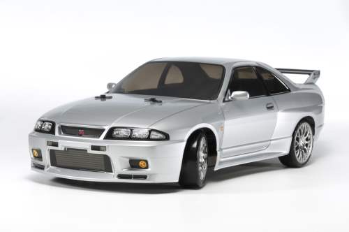 The 1995 Tokyo Auto Salon was the stage for the announcement of the high-performance R33, 4th generation of the Nissan Skyline GT-R. It featured a wider, strengthened body compared to the R32, and its form is faithfully depicted by this model in durable polycarbonate. Door mirror and rear wing are recreated using separate parts. Choose between different rear wing angles. The TT-02D is a drift spec shaft driven 4WD chassis which offers thrilling drift action!